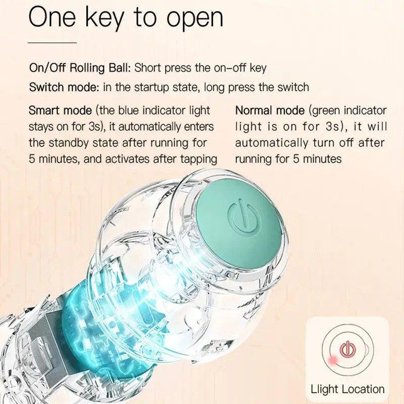 Med på/av-knappen när du slår på den kommer bollen att röra sig i cirklar, framåt och bakåt som kommer att göra katten attraktion på den.
