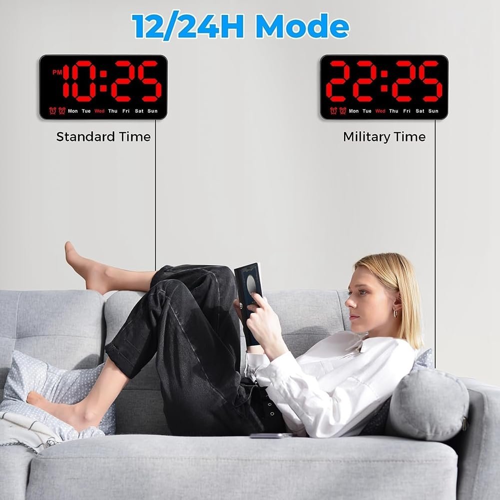 [Tydlig LED-display med stora siffror] – Den digitala väggklockan har stora siffror på 2,7 tum som gör tiden lätt att avläsa, även på längre avstånd. Perfekt för äldre personer eller för dig med nedsatt syn.