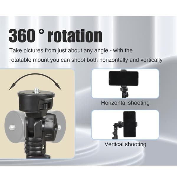 360° rotation: Med det vridbara fästet kan du ta bilder ur alla vinklar – både stående och liggande. Stativet kan användas på golvet eller som bordsstativ.
